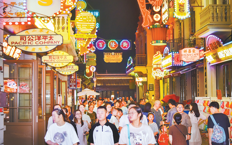 吴都·乔街景区人山人海,夜经济红火。