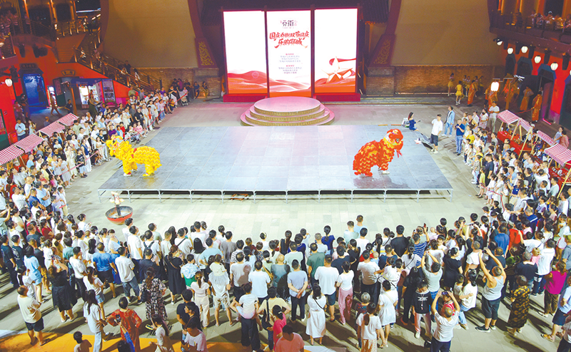 中秋音乐会吸引了众多市民驻足观看。