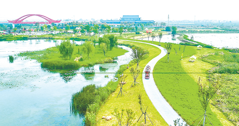 孩子们乘坐小火车畅游梁子湖区磨刀矶湿地公园,在欢声笑语中欢度佳节。