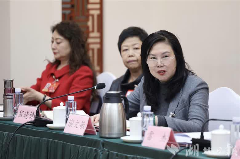 3月8日是三八国际妇女节,在全国政协十四届四次会议小组会议上,住鄂全国政协女委员们正在履职尽责。(湖北日报全媒记者 陈少哲 摄)