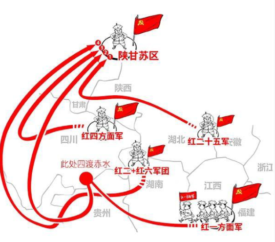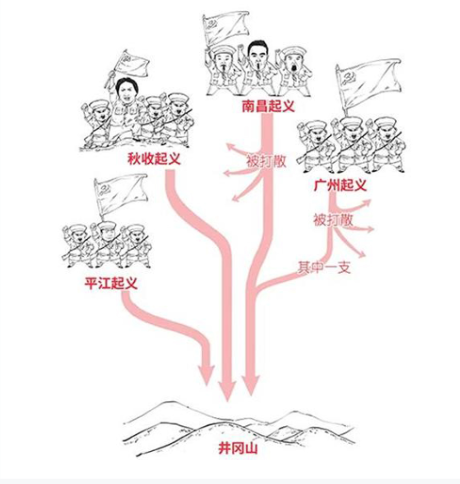 年轻的创作者们热血沸腾:“共产主义天生就是热血系!”于是,那段波澜壮阔的历史被画了出来。一群理工男将井冈山的红军队伍画成了树状图,平江起义、秋收起义、南昌起义中一支、广州起义中一支等几支红军队伍共同汇集到了井冈山,一目了然。长征的红一方面军、红四方面军等不同路线图,都在地图的辅助下一清二楚。