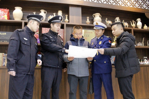民警主动上门,将办理好的《行业综合许可证》送到旅馆负责人手中。特约记者王厅摄
