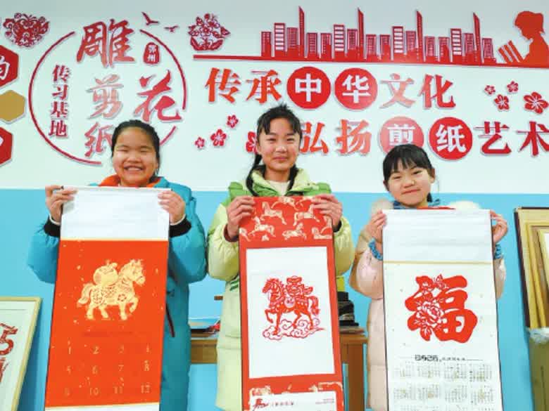 近日,华容镇周汤小学雕花剪纸传习基地举办“剪个马儿过大年”主题活动。同学们以雕花剪纸的形式迎接2026丙午马年的到来,使古老的非遗技艺在新春焕发新的生机。通讯员陈盼摄