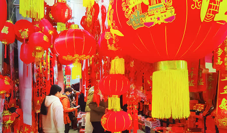 2月11日,市民选购新年饰品。春节临近,我市街头年味越来越浓,一派喜气洋洋,市民选购春联、灯笼等喜庆饰品,红红火火迎新年。全媒体记者方仲华摄